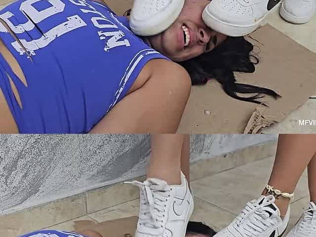 "Worshiping mature lady feet while neighbors watch on balcony"