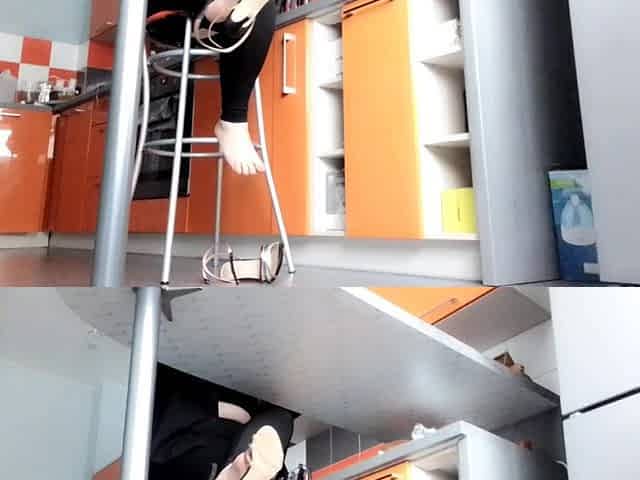 POV Silent Foot Worship Under the Desk at Work: Big Feet in and Out of Black Nylon Stockings