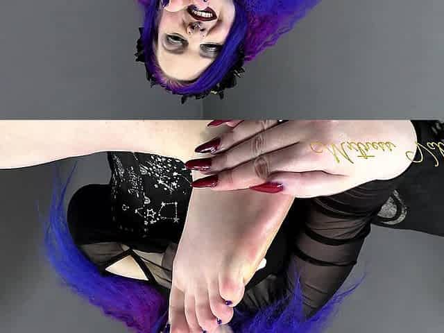 Humiliating you in my dungeon while you worship my feet and breasts...