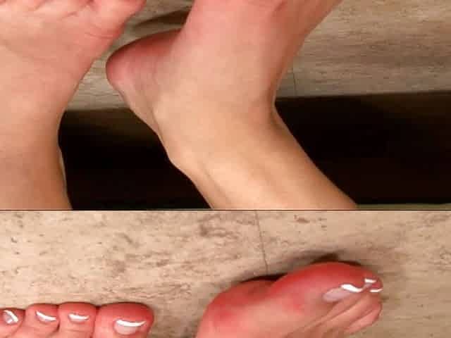 Busty babe Nadia White gives a footjob, fuckedfeet