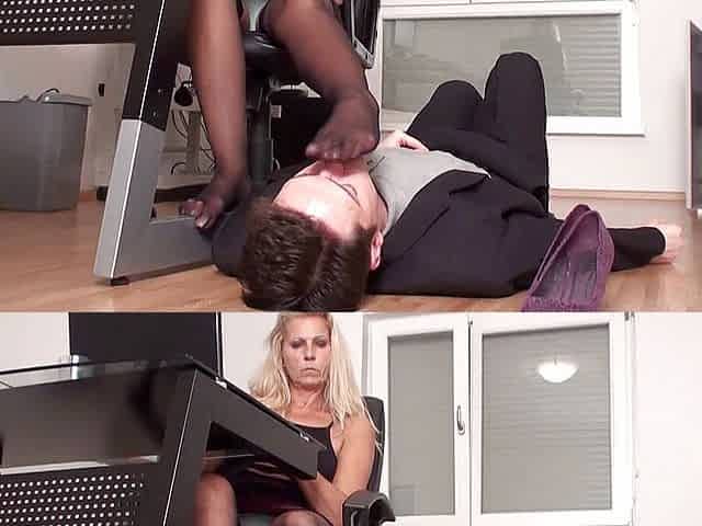 Curious Goddess blonde with big ass dominatrix foot slave part 3