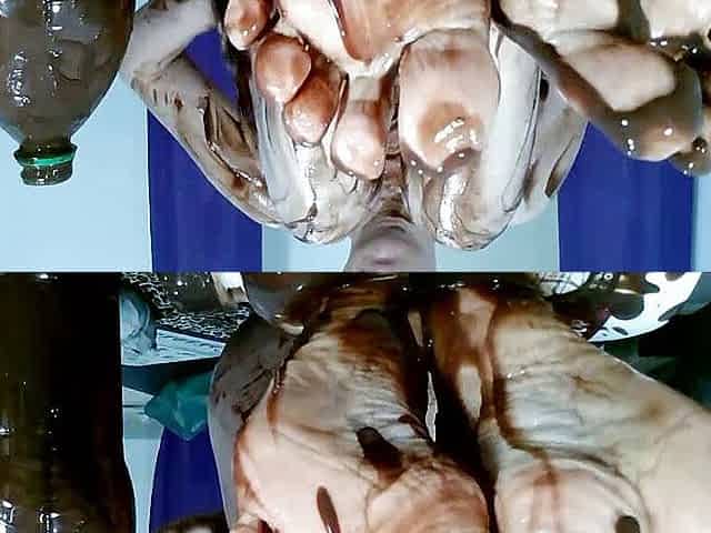Feet fetish - wanking the foot with chocolate