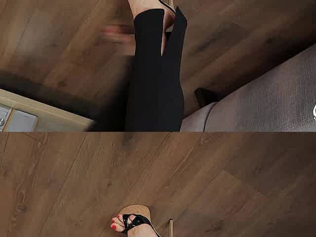 Sexy high heels unboxing and show off on her long toed feet