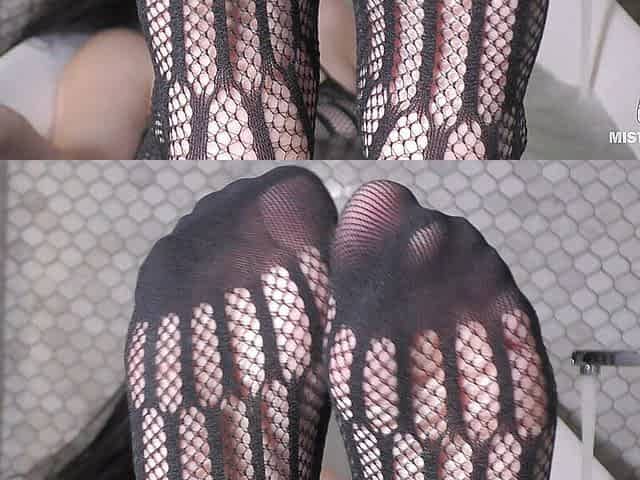 Mistress legs in black fishnets in bath tease and ignore