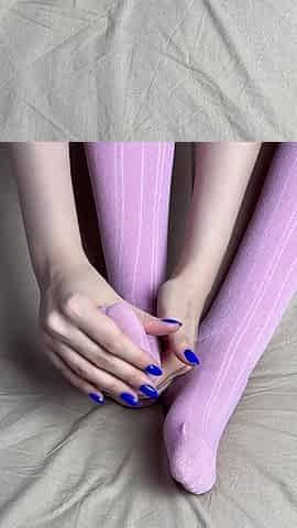 Pink Socks in Hands of Mistress with Blue Nails in Solo Video