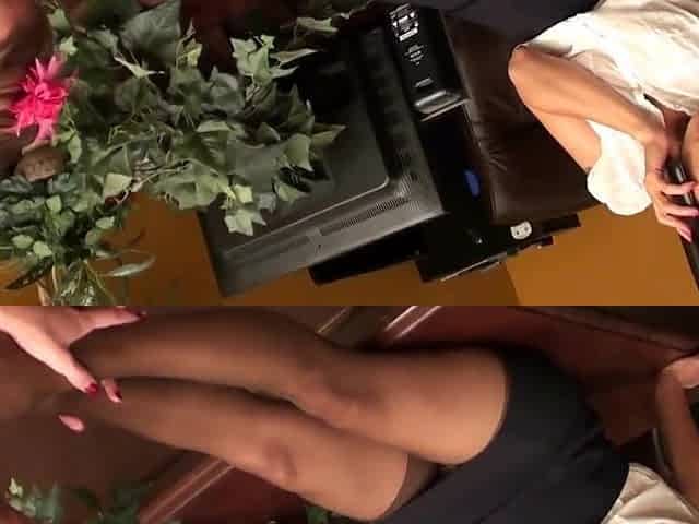 NylonFeetVideos Clip Viola B and Lesley. Sittin in her office Viola was dreaming of Lesley's fat juicy dick and this long sexy l