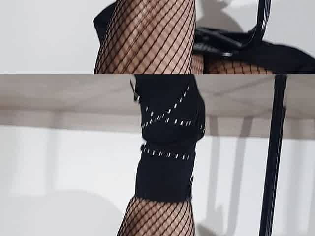 Tapping with fishnets and black boots