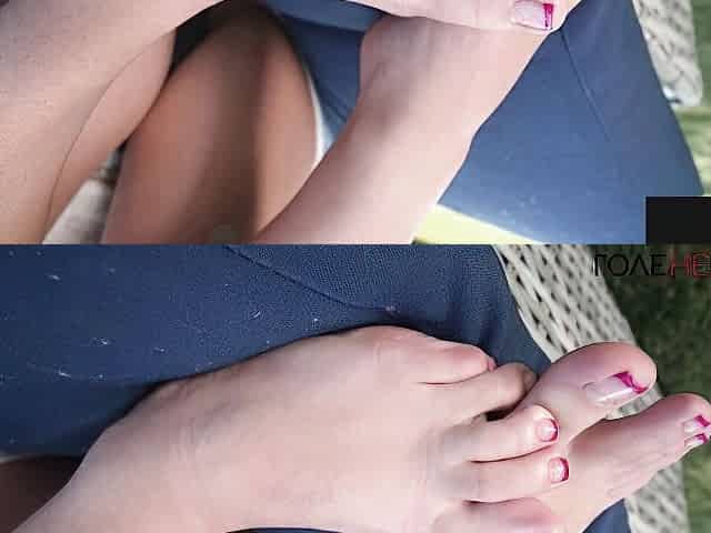 Outdoor Fluffy Heeljob & Foot Worship from Golden-haired Femdom-goddess with Lengthy Toenails – Cum on Toes