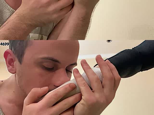 Slave Sniffs Kira's Sweaty Socks and Puts Them in Mouth