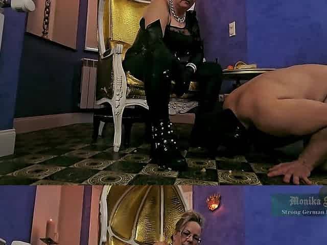 Misress Monika Schmidt Crushing Spitting Feeding Verbal Humiliation Sph in Leathergloves