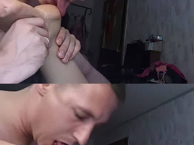 Goddess's fishnet feet worship. Kissing, licking, gagging