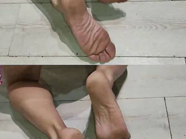 Felicia's swollen soles after flying - a foot worship dream in socks