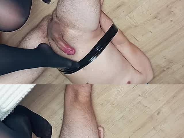 Pantyhose Footjob, Ballbusting and Ruined Orgasm!