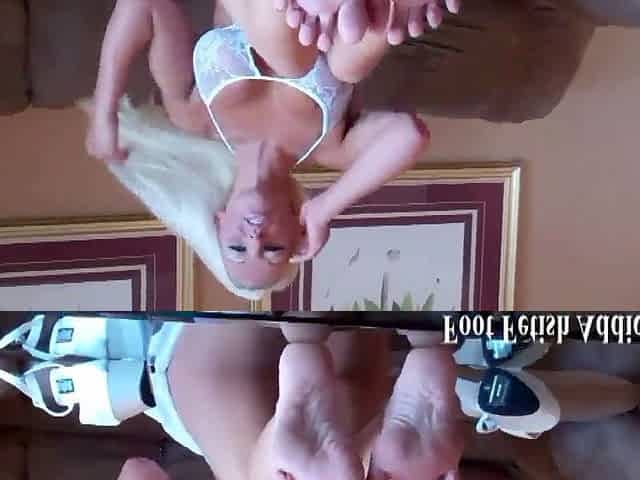Exciting footjob from the first person. Sweet Russian blonde knows how to bring you to orgasm.
