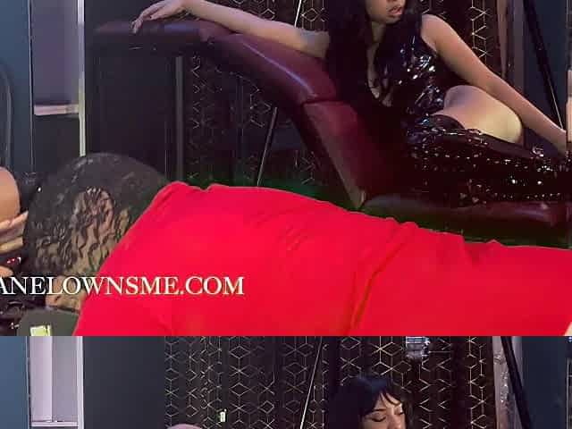 FEMDOM- Slaver Ebony, Latin chick makes sub worship boots