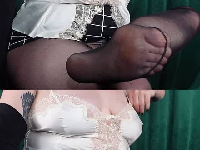 Boss Lets You Jerk to Her Stinky Pantyhose Covered Feet