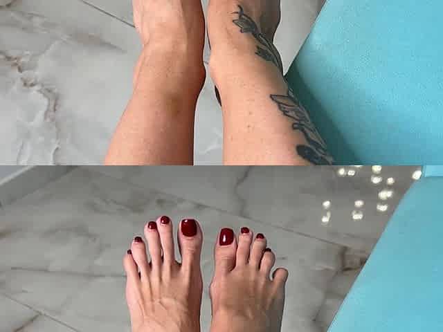 Glamorous hot tanned blonde Kristi_Exhibition showcases her foot worship on Bongacams