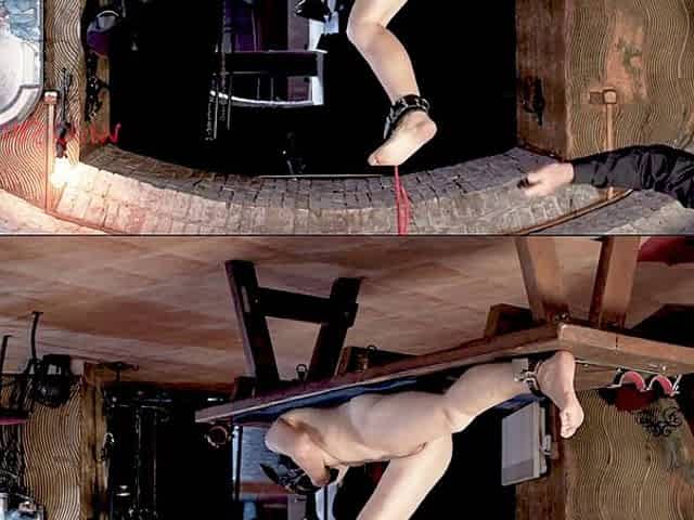 Obedient Slave in a Cage Sucks and Licks Mistress Nylon Soles