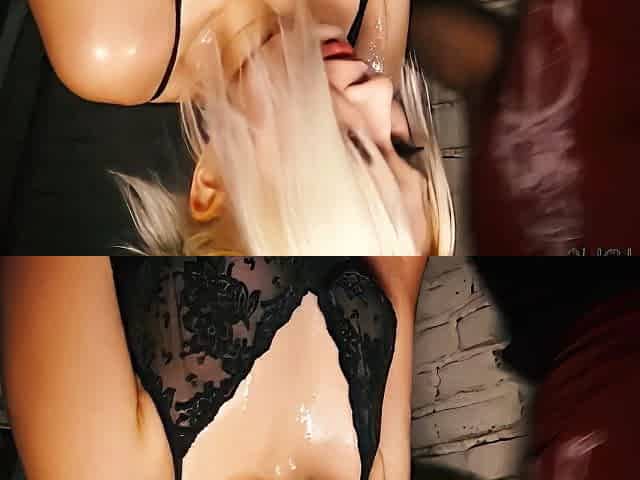 Suspended Black Slave Sniffing Pussy To Busty Dominatrix