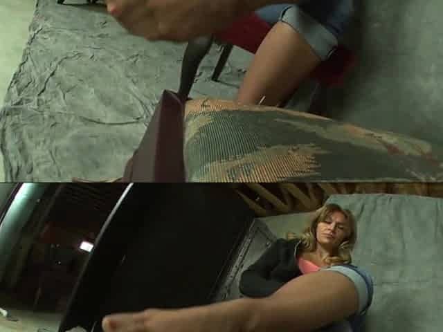 Two slaves feet and extreme gym workout Helpless teen Kaisey