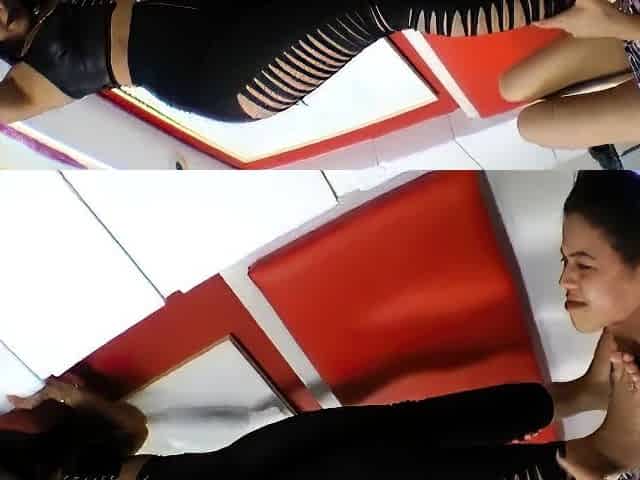 "Japanese Nylon Miss domiante her tied up slave with her nylon feet and nylon ass."