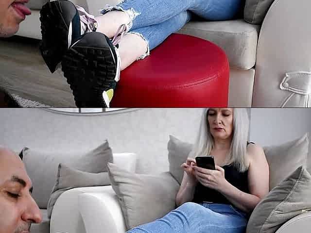 Dirt hungry slave eating his Mistress smelly foot & lick it clean HD