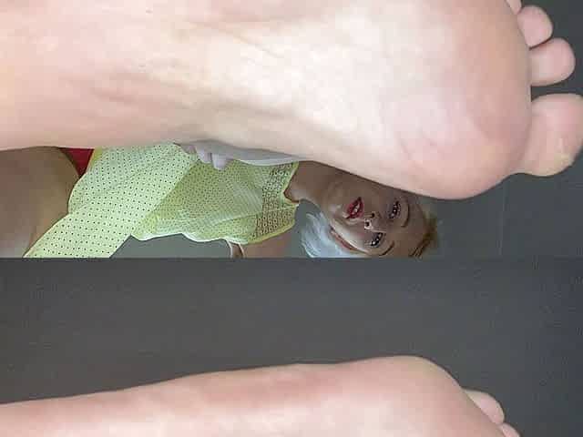 Humiliating slave in masked, sexy big boobs blonde dominating foot fetish