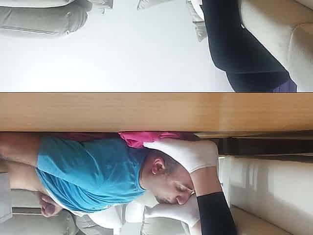 The humiliation party 8 - Cuckold slave made to lick cum off of feet