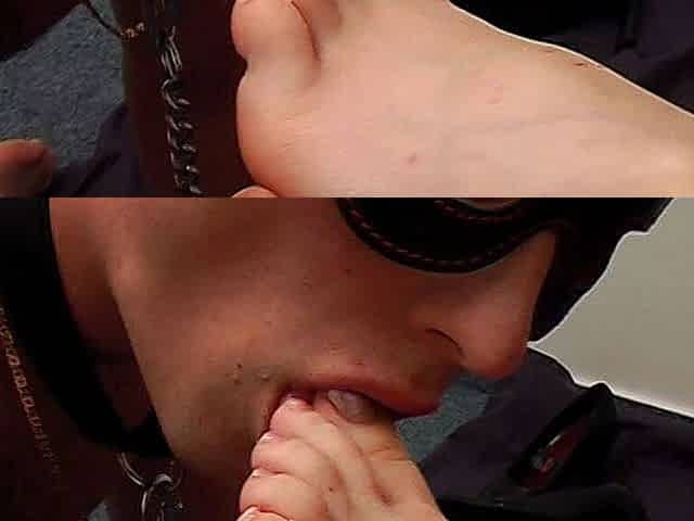 Amateur home femdom foot domination and foot gagging close-up with Mistress Kira and her lifestyle slave