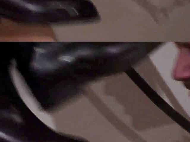 Slave Trotti has to take off Lady Jaqueline's boots and lick her sweaty feet.