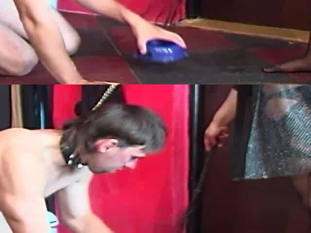 Perverted chick is having fun with her slave in this homemade footage