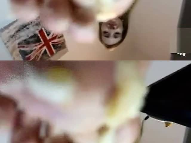 Footslave eats toenails of two mistress