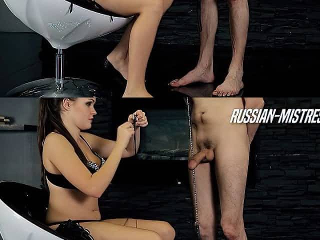 Fetish lady spanks the cock of her slave