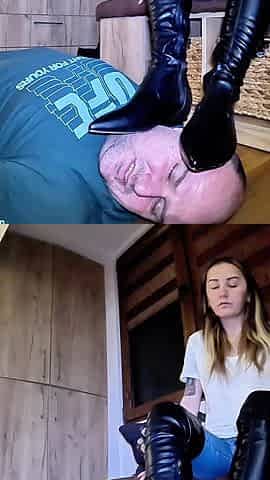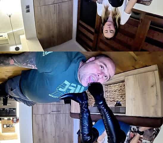POV session with Lady Victoria Valente: licking and stroking those booted feet