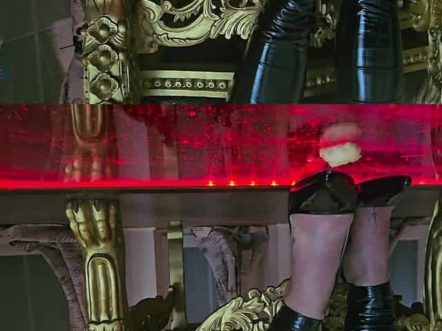 Fetish Place Foot Slave Serving Dommes As A Footstool For