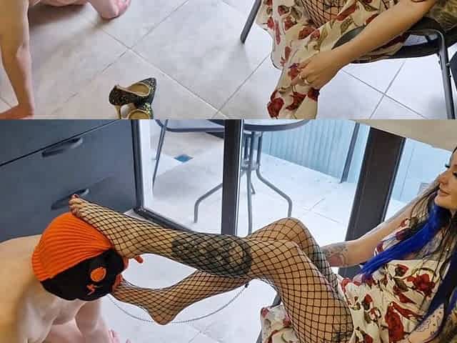 Incredible foot worship with slender legs in fishnet tights by dominatrix_nika