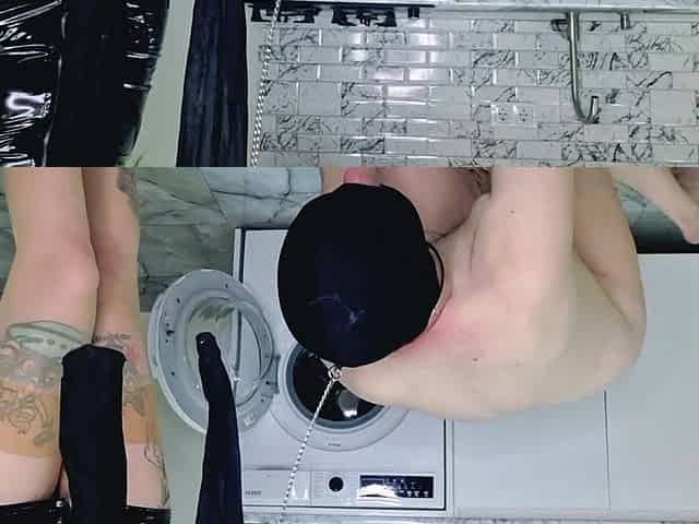 Empress Bella Sadic Stick Your Feet with Latex in the Slave's Ass