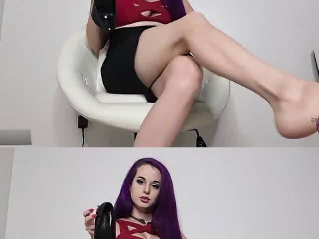 Dominant mistress Vikiunicorn laughs at your tiny member while enjoying foot worship