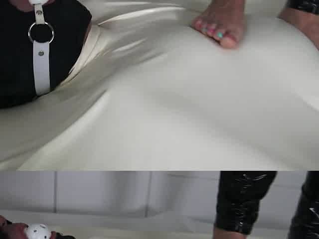 Latex Slave Take Care About Foot Man