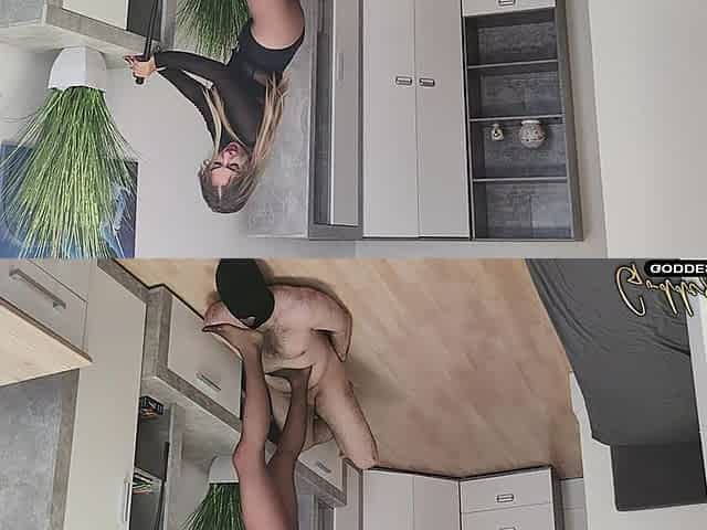 Slave for feet. Feet fetish. Slave kisses legs and feet, sucks toes of Dominatrix Nika
