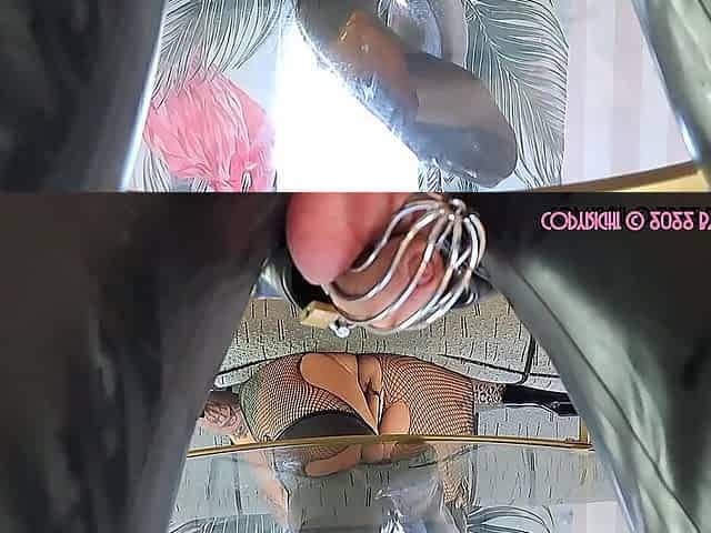 Mistress Electro Torture Cock In Chastity And Orders Slave To Suck Dildo