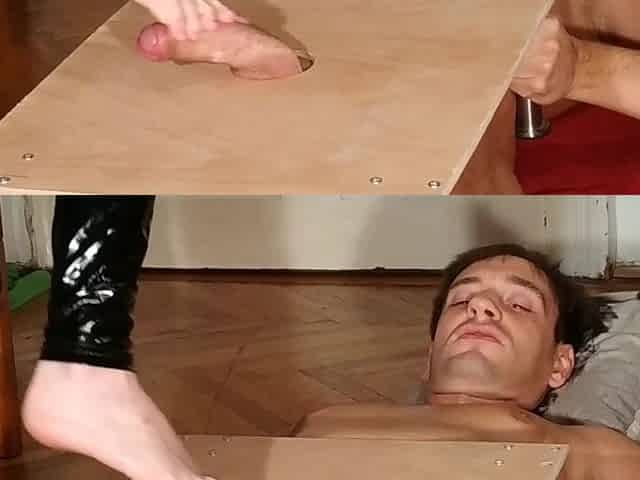 Slave licks 12 cumshots from his femdom's feet pt1 HD