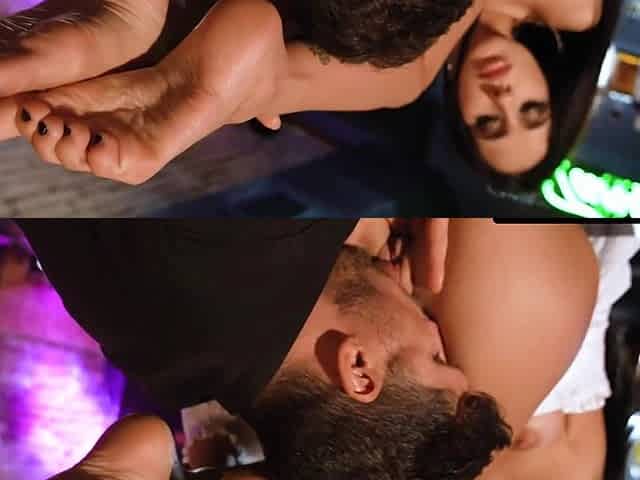 21 SEXTURY - Gorgeous Bartender Alyssa Bounty Gets Cum On Her Pretty Feet By A Foot Worshiper - Petite Deepthroat