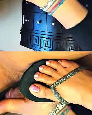 Wow look how this gal can play with your cock by her feet soles and toes