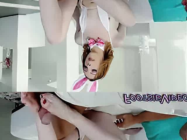 Wild babe gives foot job