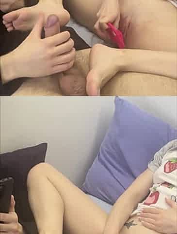 I Give My Boyfriend a Footjob While I Masturbate Until We Cum Together