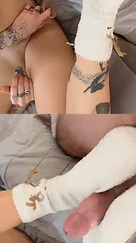 I give my boyfriend a footjob whilst I masturbate until we cum jointly