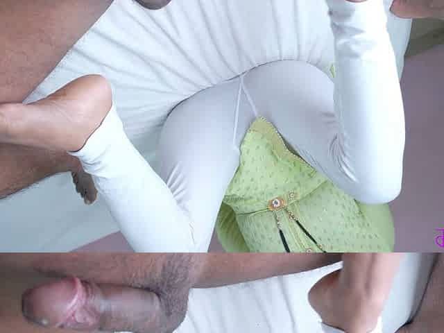 Sexy MILF Footjob a Big Cock Cumming on Her Feet After Fucking Her