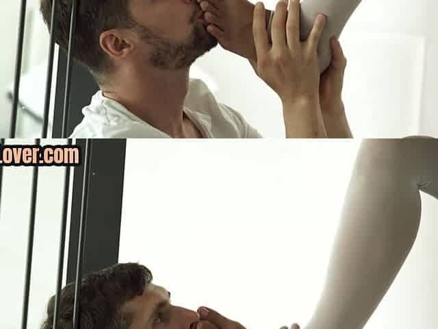 Смачный фут-фетиш с дрочкой члена ногами в латексных лосинах