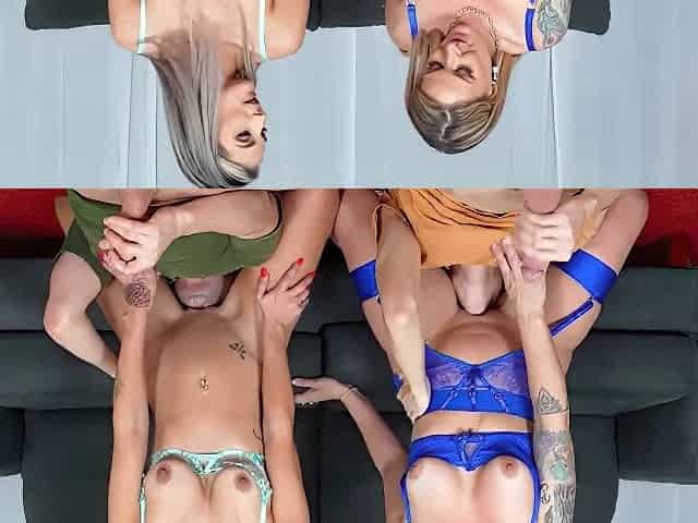 Towheaded cuties Sophia Locke, Annie King, and Jennifer White deliver sloppy, pleasurable oral action